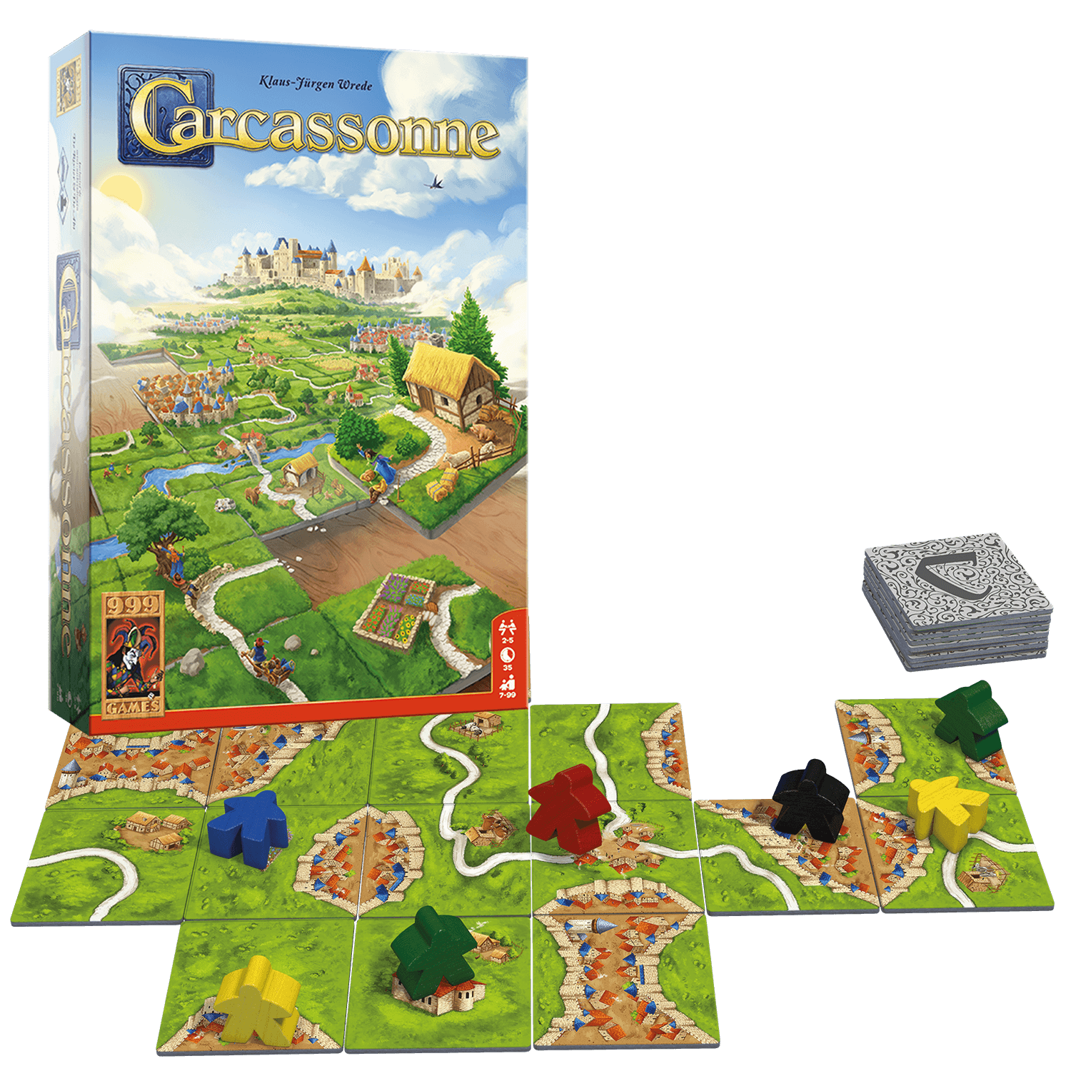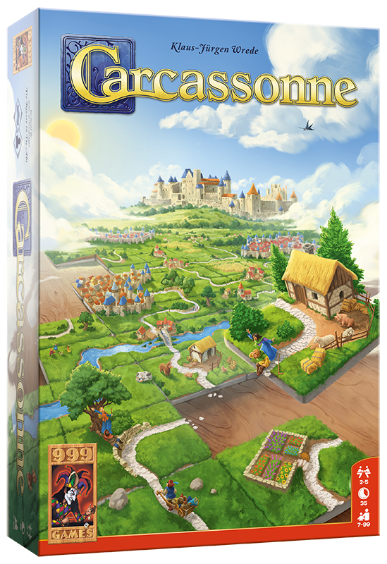 Het Franse Carcassonne is de best behouden middeleeuwse vestingstad. De spelers zijn landheren en zetten hun horigen in om zoveel mogelijk invloed in het gebied te krijgen. Iedere beurt trek je een landtegel die je vervolgens aanlegt aan het steeds groter wordende speelveld. Op de zojuist gelegde tegel mag je vervolgens een horige als struikrover, ridder, monnik of boer plaatsen. Met die horigen, waarvan je er natuurlijk een beperkt aantal hebt, scoor je punten als hun weg, stad of klooster wordt afgebouwd. Ze komen dan terug in de voorraad en zijn direct opnieuw inzetbaar. Lastig wordt het als andere spelers er door het slim plaatsen van landtegels voor zorgen dat je horigen geen mogelijkheden meer hebben om ooit nog in je voorraad terug te keren. Je zult dus goed moeten nadenken, hoe, wanneer en waar je de horigen inzet!