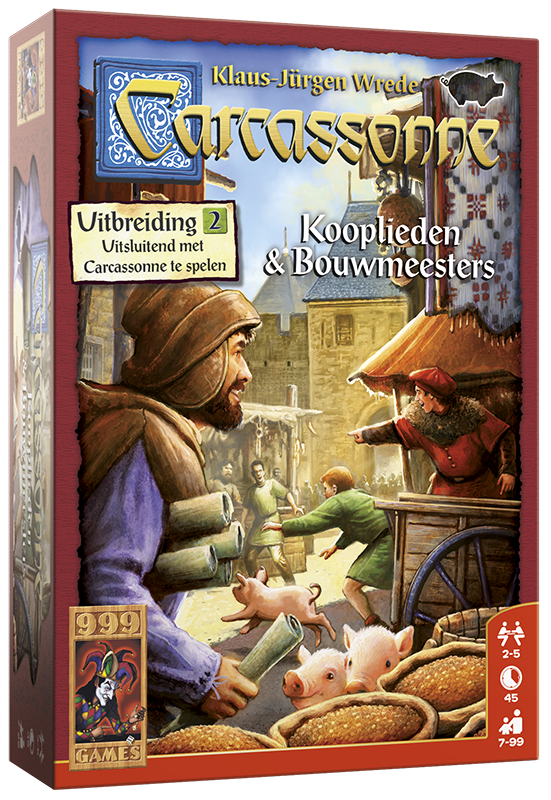 Kooplieden en Bouwmeesters is de tweede uitbreiding op het bekende legspel Carcassonne en introduceert een drietal nieuwe spelregels, die het toch al spannende spel een extra dimensie geven. Zo kunnen zich nu handelswaren in een stad bevinden. Als je een stad afbouwt, mag je de handelswaren in die stad hebben. Zo kan het opeens interessant zijn om een stad af te bouwen waar je zelf niet staat. Verder zorgen varkens ervoor dat je aan het einde van het spel een punt meer krijgt voor de steden aan je weilanden. Ten slotte kun je nu ook een bouwmeester op een weg zetten. Deze geeft je de mogelijkheid om een extra tegel te trekken als je de betreffende weg verlengt. Met Kooplieden en Bouwmeesters beleef je Carcassonne eens op een hele andere manier.