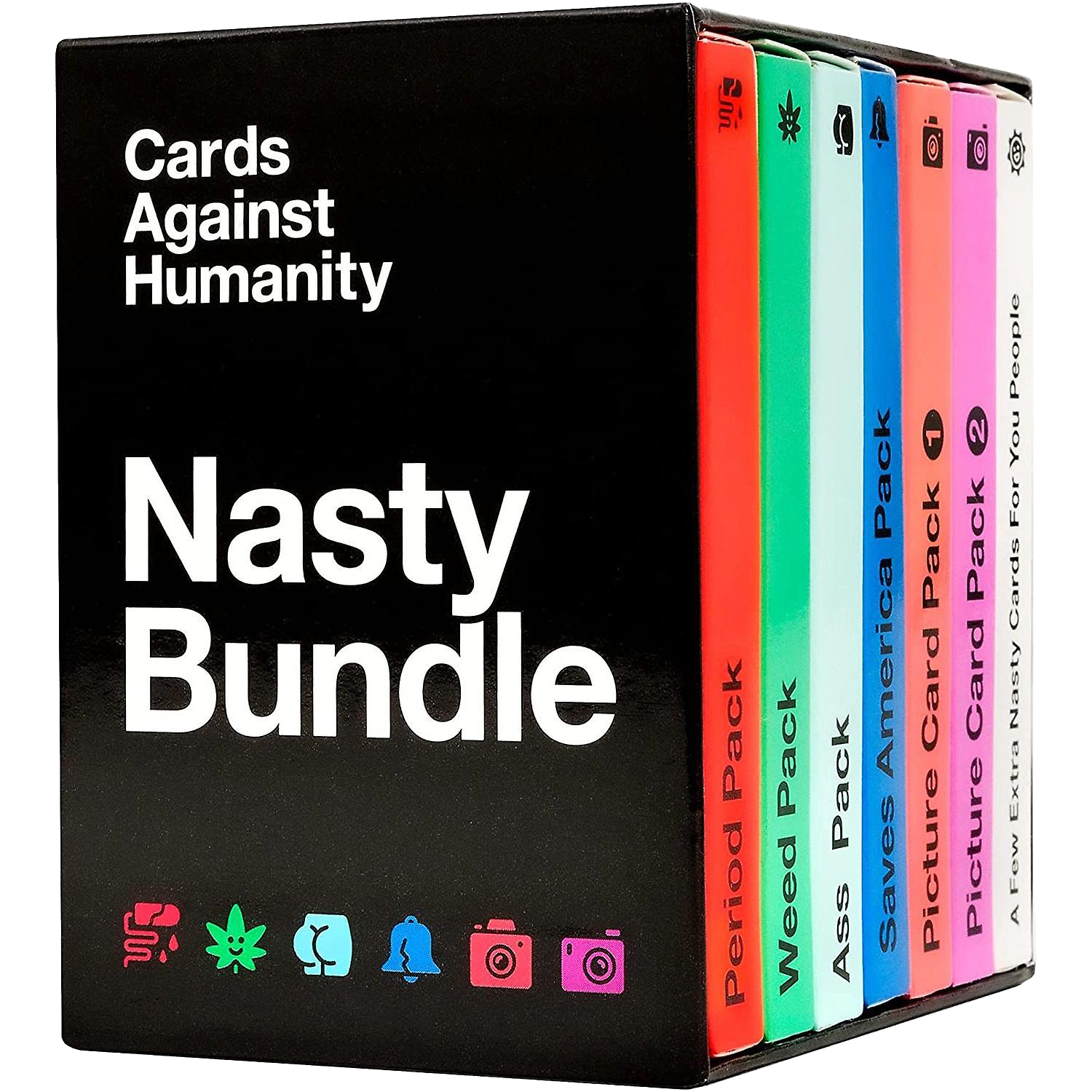The Nasty Bundle is een afschuwelijke verzameling van de pittigste uitbreidingspakketten die ooit zijn geschreven. Het bevat kaarten die eerder zijn uitgebracht in de Period Pack, Weed Pack, Ass Pack, Saves America Pack en Picture Card Packs, plus een handvol gloednieuwe kaarten die we speciaal voor jullie, zieke geesten, hebben geschreven. Schud deze in je normale set Cards Against Humanity en zorg dat iedereen zich ongemakkelijk voelt tijdens de spelletjesavond.