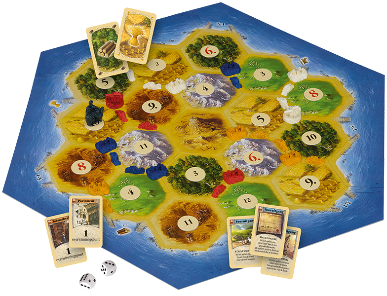 Dit handelsspel speelt zich af op een eiland waar zich de grondstoffen hout, erts, graan, baksteen en wol bevinden. De spelers beginnen het spel met twee dorpen, die grenzen aan tegels met deze grondstoffen. Het getal op de tegel geeft aan bij welke dobbelsteenworp wordt geoogst. Elk aangrenzend(e) dorp of stad ontvangt grondstoffen bij deze worp. Met deze grondstoffen kan worden gehandeld en gebouwd. Voor het bouwen van nieuwe starten, dorpen of steden wordt een bepaalde combinatie van grondstoffengevraagd, die men door slim handelen met de medespelers, of de zich op het bord bevindende havens kan verkrijgen. Je kunt ook nieuwe ontwikkelingen kopen.