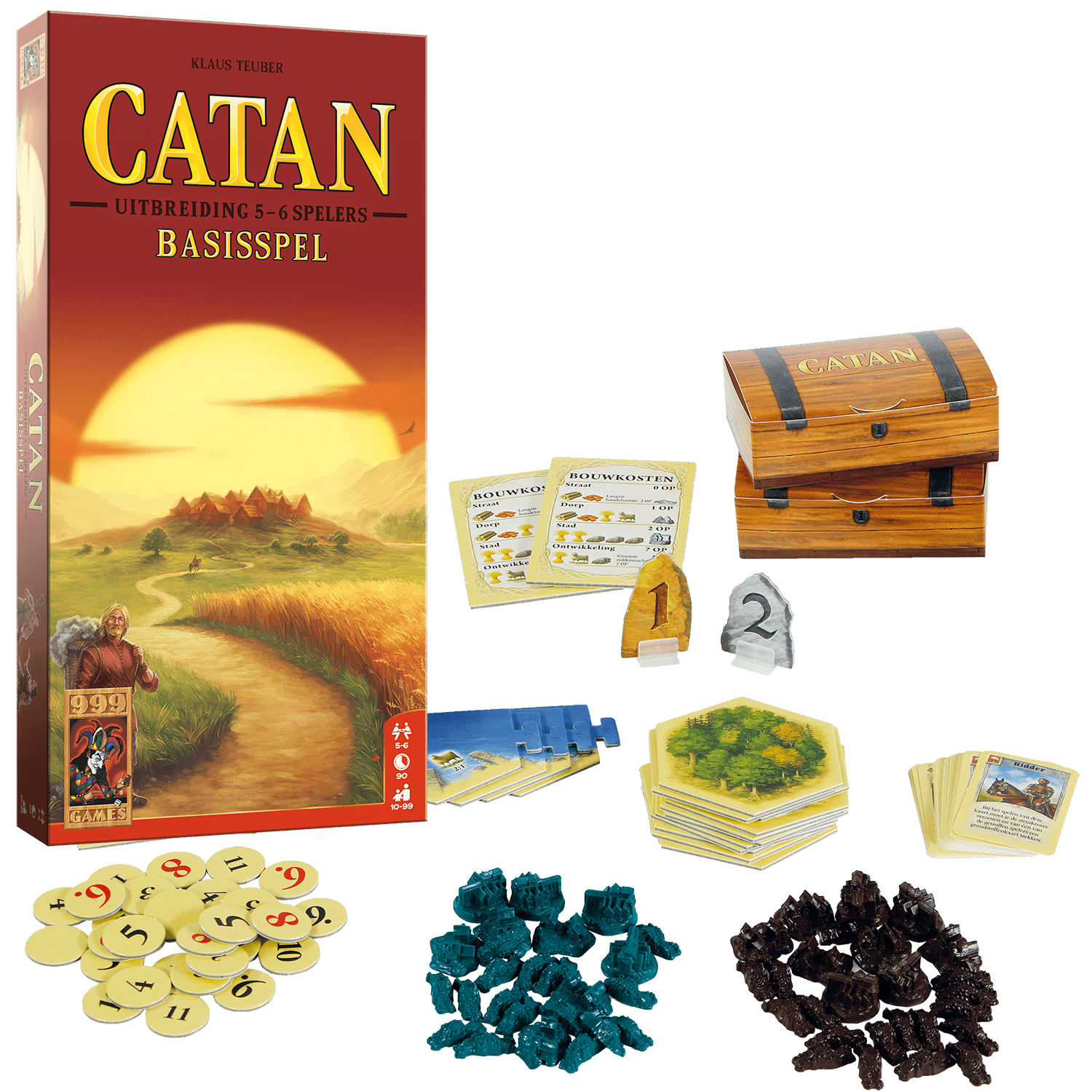 Speel Catan nu met 5 of 6 spelers! Deze uitbreiding bevat dorpen, steden en straten in twee extra kleuren om Catan met nog meer spelers te spelen. Ook bevat deze uitbreiding extra landtegels, zodat het eiland groot genoeg gemaakt kan worden voor het nieuwe spelersaantal. Ook heeft deze uitbreiding een extra spelregel, waardoor per beurt twee spelers mogen bouwen. Catan is een moderne klassieker met een geschiedenis van ruim 30 jaar. Het spel won vele onderscheidingen en geldt als een mijlpaal op bordspelgebied. Deze huidige editie heeft plastic speelfiguren, landtegels van steviger materiaal, een vernieuwde inlay en handige doosjes om de speelfiguren in te bewaren.
