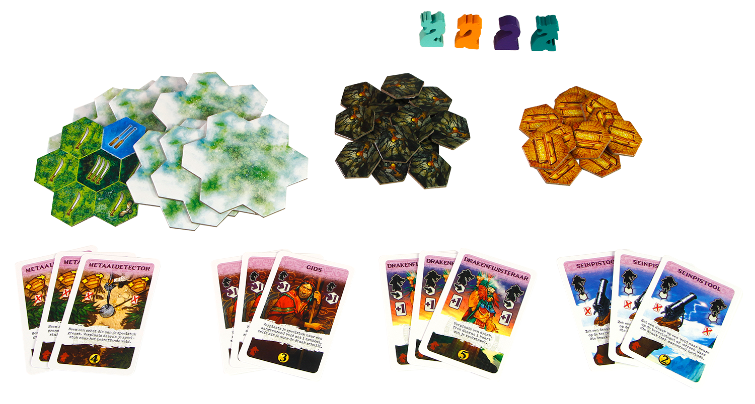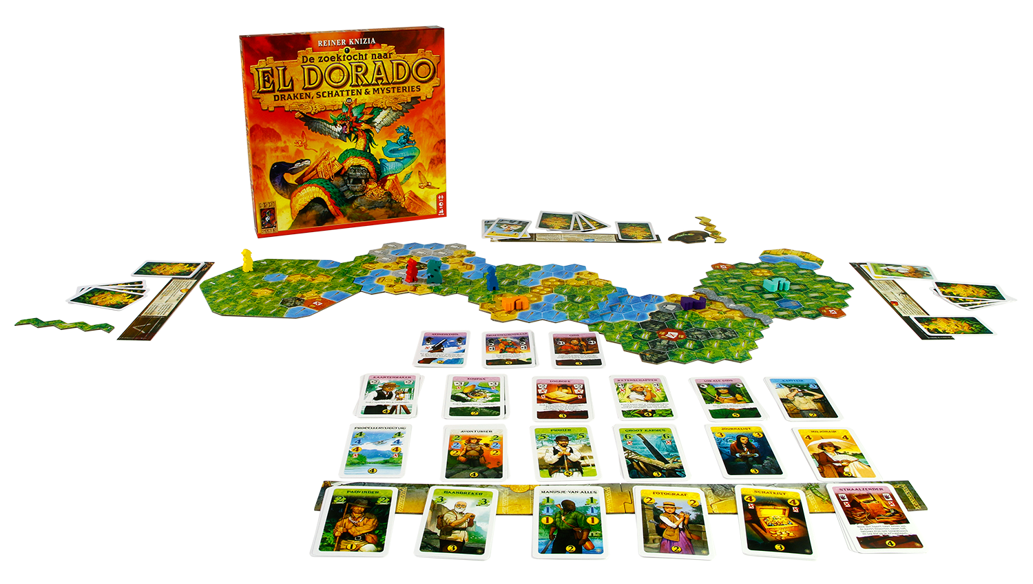 Draken, Schatten & Mysteries is een uitbreiding op het populaire De Zoektocht naar El Dorado. De nieuwe uitbreiding bestaat uit drie modulen, die elk eigen spelelementen toevoegen. Zo zet de module “Draken” draken op het speelveld, die speelstukken in de directe omgeving ervan vertragen. De module “Schatten” introduceert schatfiches, waarmee een speler handkaarten kan vernietigen, twee stappen naar keuze kan doen of zelfs het spel kan winnen. De module “Mysteries” zorgt ervoor dat er gedekte terreintegels op het speelveld liggen, waardoor de spelers zich niet goed kunnen voorbereiden op wat hun te wachten staat. Alle drie modules voegen tal van nieuwe spelelementen aan het spel toe. Extra kaarten en grotfiches zorgen voor nog meer variatie. Voor alle modulen is het basisspel vereist, maar verder kunnen ze los van elkaar worden gespeeld of met eerdere uitbreidingen worden gecombineerd.