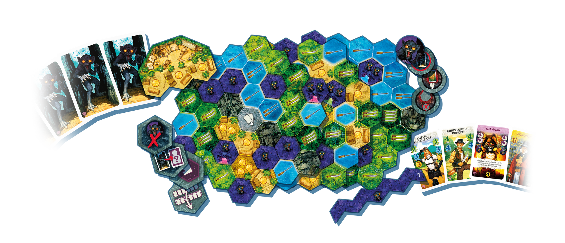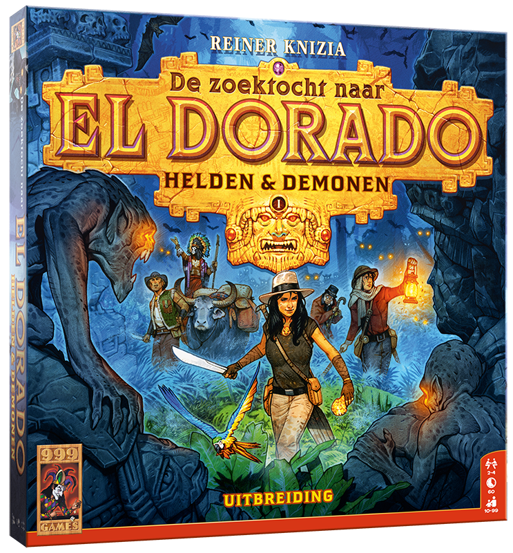 Nieuwe avonturen tijdens de zoektocht naar El Dorado! Met deze uitbreiding krijgen de expeditieleiders te maken met nieuwe uitdagingen, zoals vloeken en demonen. Maar geen zorgen, je krijgt ook hulp uit onverwachte hoek. Zo kun je speciale helden inhuren en begin je je reis met jouw persoonlijke dierlijke sidekick. Helden & Demonen komt verder met drie nieuwe terreintegels, nieuwe expeditiekaarten en nieuwe grotfiches. Verder heeft deze uitbreiding extra spelregels. Zo zijn er nu de demonenkaarten, een soort strafkaarten die ruimte innemen in je stapel expeditiekaarten. Ook loop je risico op vloeken, die je met demonenkaarten opzadelen of je pion stappen terug zetten. Helden & Demonen is uitsluitend te spelen in combinatie met De Zoektocht Naar El Dorado.