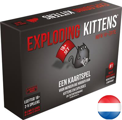 Exploding Kittens is een fantastisch kaartspel voor mensen die van katten, explosies, laser beams en soms geiten houden. Dit familievriendelijke partyspel was het meest succesvolle project ooit op Kickstarter. Exploding Kittens is een soort Russisch roulette spel: je neemt een kaart van de stapel tot je een exploding kitten kaart krijgt, op dat moment heb je verloren. Met alle andere kaarten kan je je verdedigen, aanvallen, een beurt overslaan of de katten afleiden. Alle kaarten bevatten illustraties van The Oatmeal. Deze box, zoals 99.99% van alle boxen, miauwt niet!
