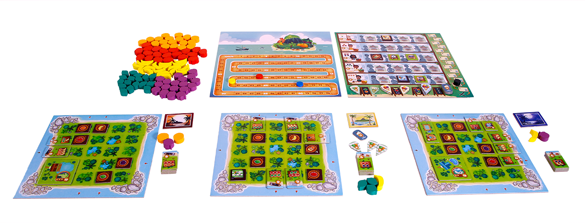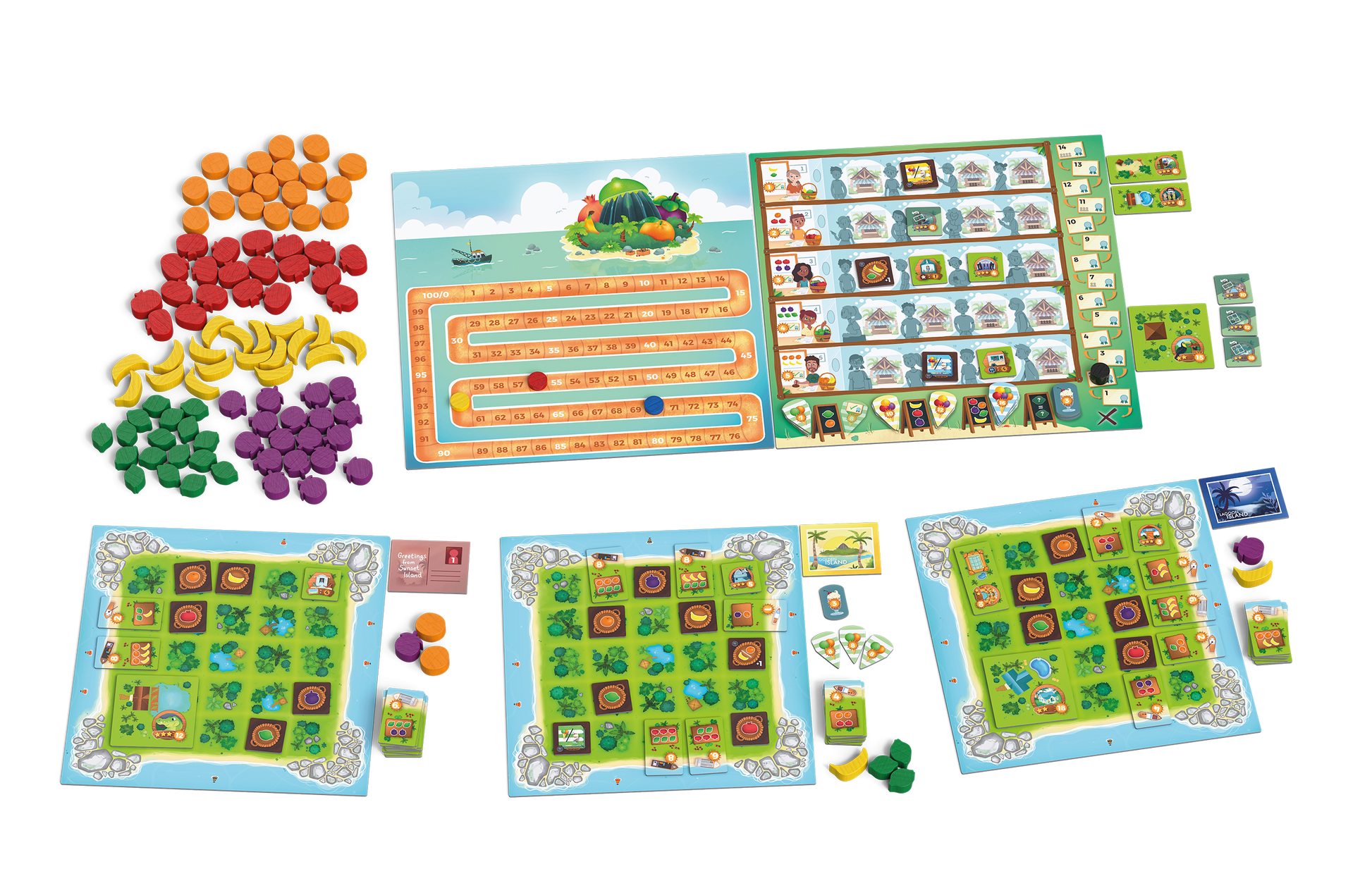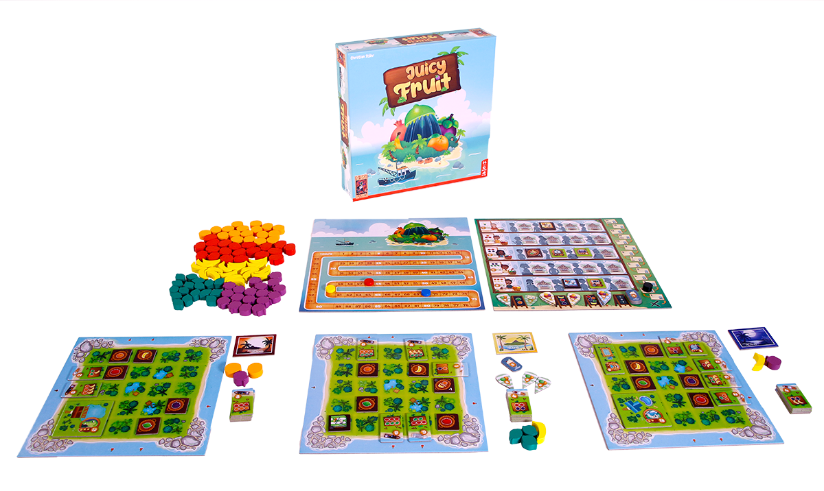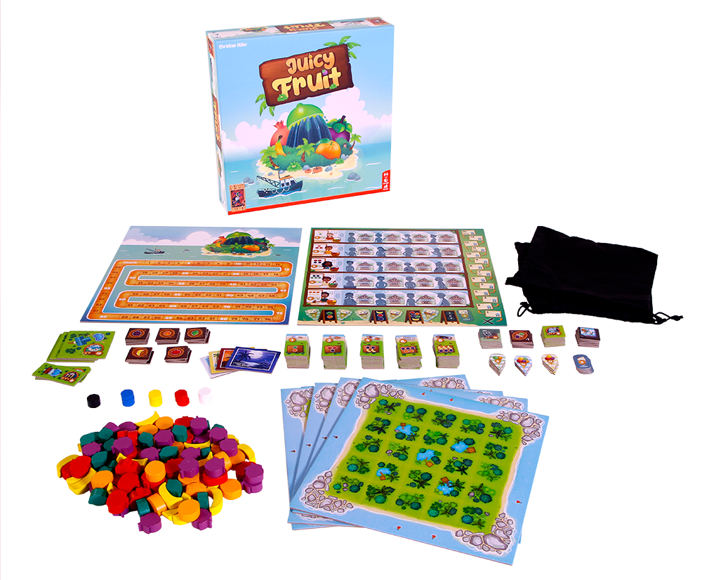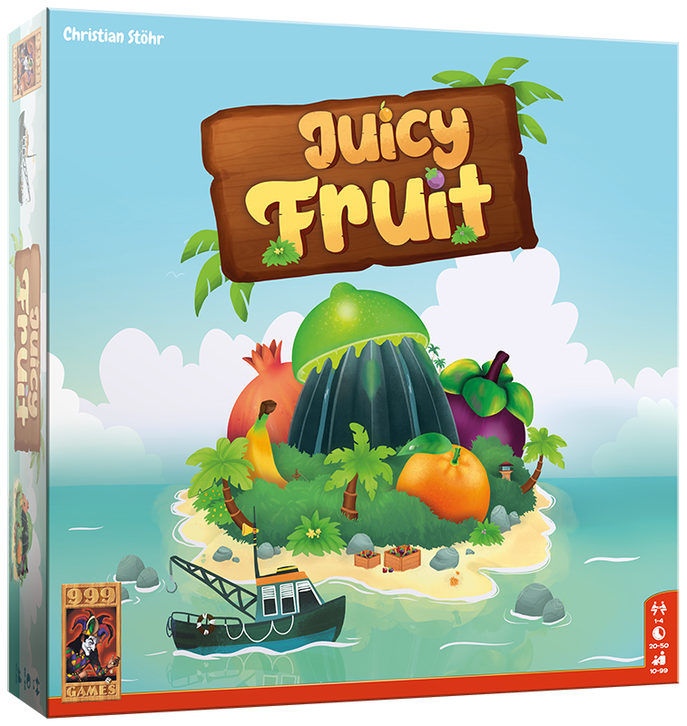 In Juicy Fruit krijgen alle spelers een eigen eilandtableau, waarop fruit moet worden geoogst. Dit fruit moet vervolgens worden gebruikt om punten te scoren door schepen met bepaalde fruitsoorten te vullen of om kleine bedrijven over te nemen, die op het eigen eiland worden gezet. Zodra het maximale aantal bedrijven door de spelers is neergezet, wint de speler met de meeste punten. Juicy Fruit combineert een vrolijke vormgeving met een tactisch spel, waarbij economisch inzicht en strategische keuzes cruciaal zijn. Schepen wegwerken leidt tot grotere fruitoogsten, maar zorgt er ook voor dat andere spelers de beste bedrijven eerder kunnen innemen. Het spel heeft tal van extra mogelijkheden, zoals speciale regels voor gevorderden. Zo kan door middel van de juicefabriek een heel nieuw spelelement worden toegevoegd. Ook bevat Juicy Fruit meerdere solovarianten. Waarom wil je dit spelen? -Tactisch tegelspel voor het hele gezin -Oogst fruit, investeer in bedrijven en creëer je mini-imperium -Verschillende solovarianten en extra regels voor gevorderden