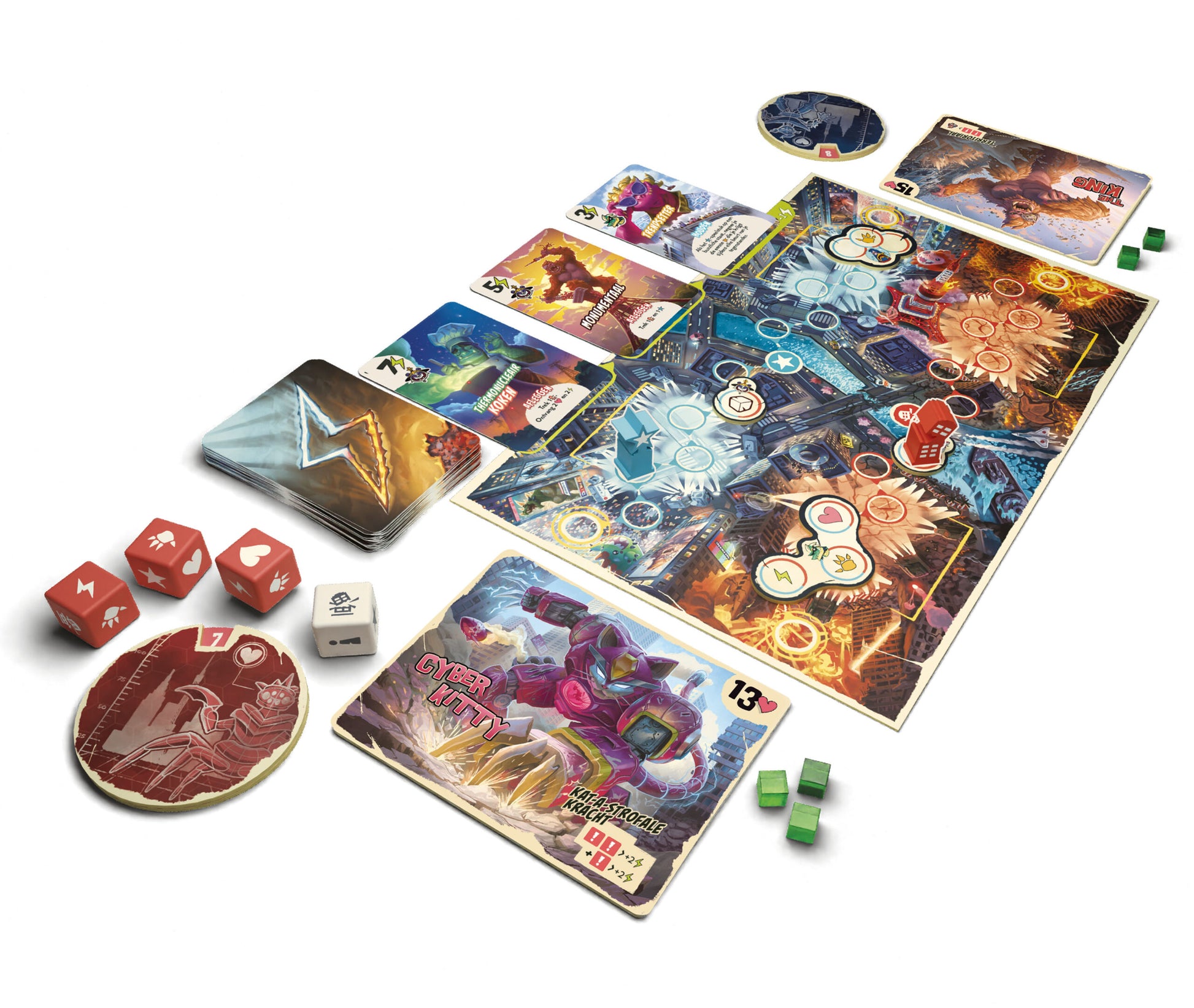 Terwijl in Tokyo de nacht valt, stijgen twee enorme silhouetten op uit de rook die uit de verwoeste wolkenkrabbers omhoog kronkelt. Er kan maar één van jullie tot King of Tokyo worden gekroond. Dit kan door je tegenstander te vernietigen of door terreur en angst te zaaien.
