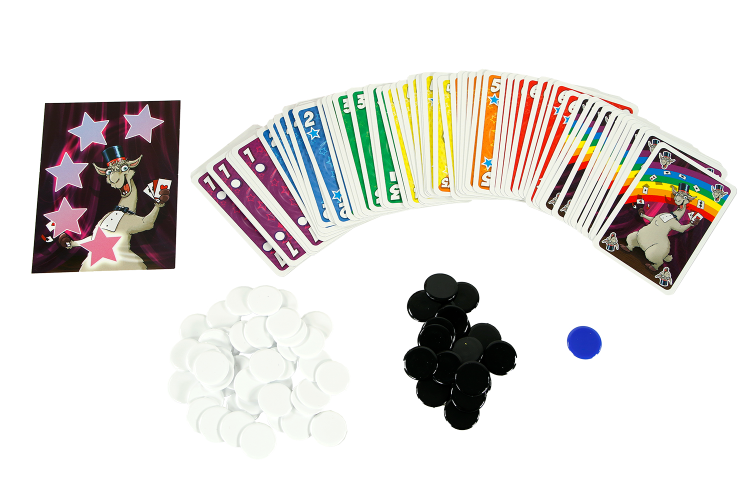 Vlot kaartspel voor het hele gezin, gebaseerd op het populaire L.A.M.A.. De lama opent zijn trukendoos. Nog steeds geldt: Leg Alle Minpunten Af, maar nu kun je ook tijdens een ronde minpuntenfiches incasseren, die je echter weer naar andere spelers kunt doorspelen. Speel je speciale kaarten handig, laat je door het magische fiche helpen en toon de anderen jouw goochelkunsten!