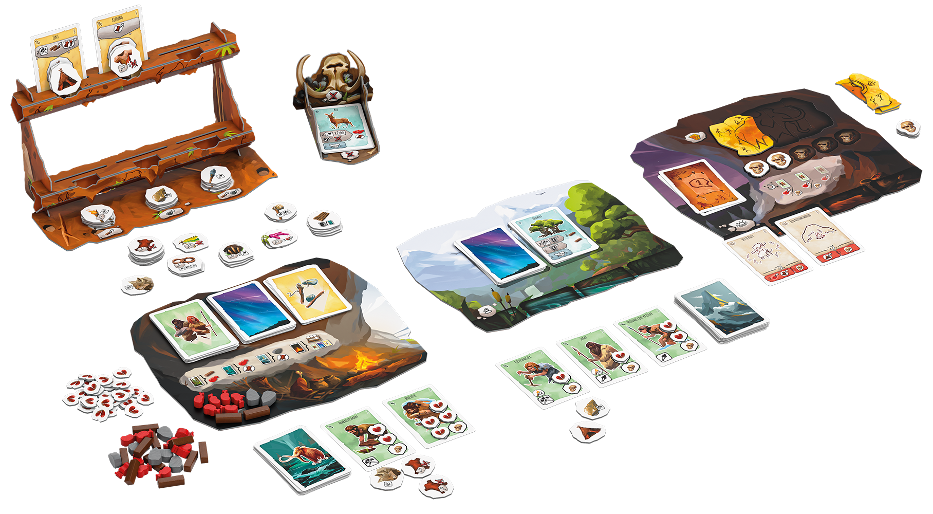In het stenen tijdperk is het eten of gegeten worden. In het coöperatieve spel Paleo proberen jullie als volksstam samen te overleven en voortdurend te streven naar vooruitgang. Maar let op, overal dreigt gevaar: wilde dieren, stormen en andere volksstammen liggen op de loer. Zullen jullie slagen? In Paleo speelt elke speler met een groep mensen uit de stam. Daartoe behoren onder andere stoere vrouwelijke krijgers, handige uitvindsters en waakzame verkenners. De spelers vormen samen een volksstam en proberen de omgeving te verkennen. Dat leidt tot telkens nieuwe avonturen. Die kunnen de spelers alleen overleven door goed samen te werken. Elke speler krijgt een eigen stapel kaarten, die zowel de te verkennen omgeving als de daarvoor beschikbare tijd voorstellen. In Paleo draait alles om het ontdekken van nieuwe dingen en er staan de spelers dan ook voortdurend nieuwe uitdagingen te wachten! Met tien verschillende modules die op verschillende manieren gecombineerd kunnen worden, is geen enkel potje hetzelfde. Zullen jullie er in slagen om te overleven en de grotschildering af te maken om zo jullie stempel op de geschiedenis te drukken?