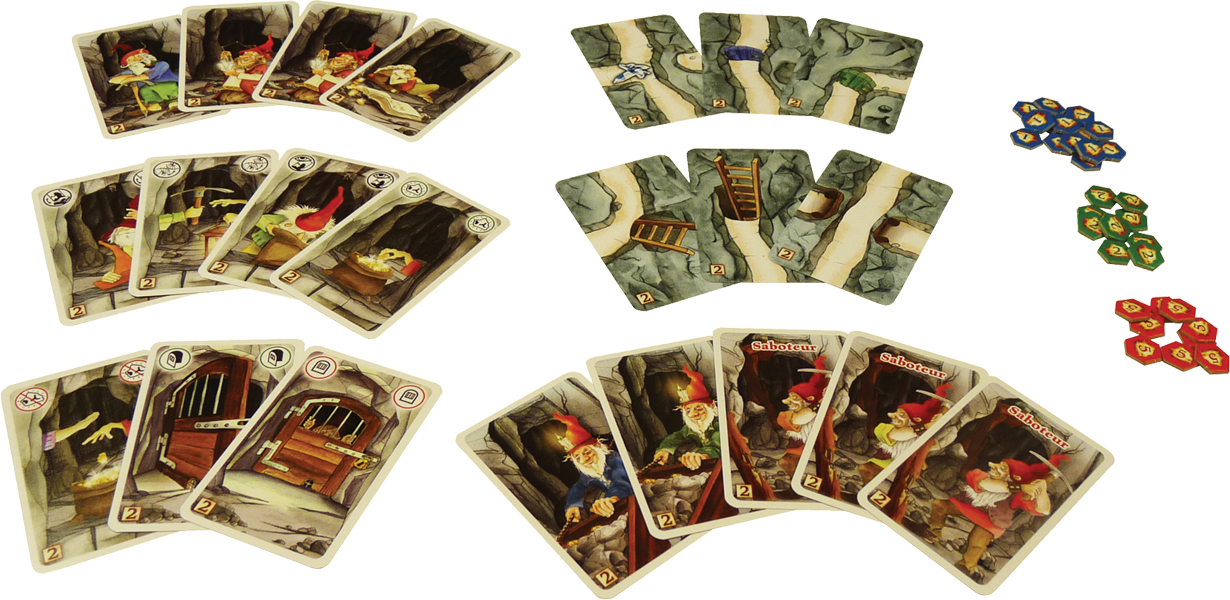 Uitbreiding op het populaire rollenkaartspel Saboteur. Het spel bevat nieuwe rollen en actie- en gangenkaarten. Zoals gebruikelijk zijn er de schatzoekende dwergen, maar ze zijn nu verdeeld in een groen en een blauw team. Maar deze keer zijn ze niet de enigen. Zo is er de chef, die wint als de goudzoekers winnen, maar altijd 1 goudstuk minder krijgt. De profiteur is helemaal een aparte. Hij wint altijd, maar moet het wel met 2 goudstukken minder doen. De geoloog daarentegen is helemaal niet in de schat geïnteresseerd. Hij zoekt liever naar waardevolle kristallen. Met deze uitbreiding wordt Saboteur nog hectischer en spannender. Ideaal voor grote groepen!