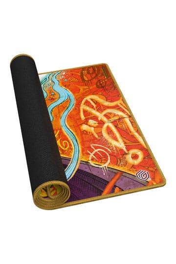 The Play-Mat in the standard size 61x35cm shows officially licensed artworks from Magic: The Gathering's set Aetherdrift. The soft cushioned Play-Mat with non-slip underside improves the gaming experience, protects gaming cards and accessories, and is even more durable than classic Play-Mats thanks to its stitched edges.