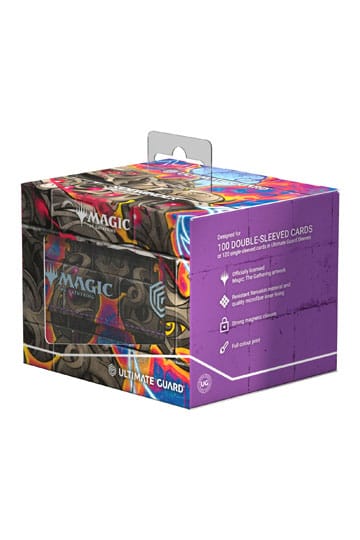 The Sidewinder 100+, made of durable Xenoskin material, holds up to 100 (double-sleeved) or 120 (single-sleeved) cards and is the perfect deck box for Commander/EDH decks. Printed in full color with officially licensed artworks from Magic: The Gathering's Aetherdrift, Ultimate Guard's Sidewinder deck boxes with their strong magnetic closure and quality microfiber inner lining are a safe and reliable storage place for MTG decks and individual trading cards.