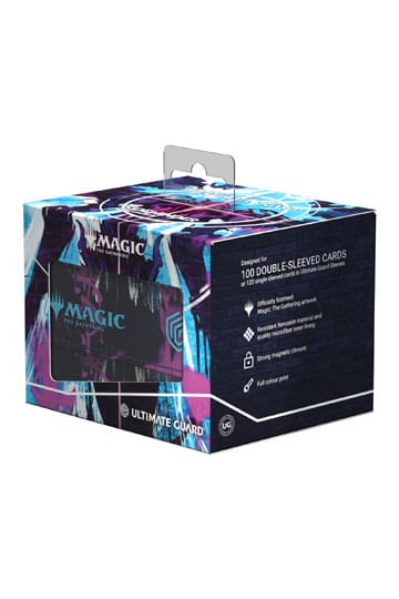The Sidewinder 100+, made of durable Xenoskin material, holds up to 100 (double-sleeved) or 120 (single-sleeved) cards and is the perfect deck box for Commander/EDH decks. Printed in full color with officially licensed artworks from Magic: The Gathering's Aetherdrift, Ultimate Guard's Sidewinder deck boxes with their strong magnetic closure and quality microfiber inner lining are a safe and reliable storage place for MTG decks and individual trading cards.