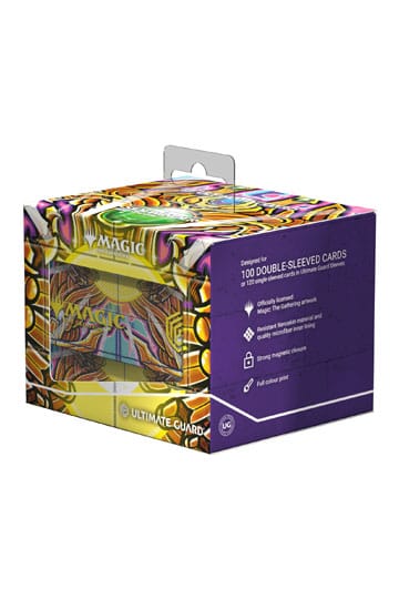 The Sidewinder 100+, made of durable Xenoskin material, holds up to 100 (double-sleeved) or 120 (single-sleeved) cards and is the perfect deck box for Commander/EDH decks. Printed in full color with officially licensed artworks from Magic: The Gathering's Aetherdrift, Ultimate Guard's Sidewinder deck boxes with their strong magnetic closure and quality microfiber inner lining are a safe and reliable storage place for MTG decks and individual trading cards.