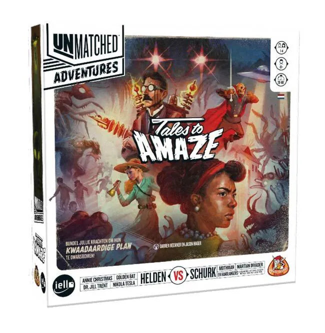 Unmatched Adventures is een coöperatieve versie van het populaire Unmatched. Neem het samen op tegen angstaanjagende schurken en hun handlangers die worden aangestuurd door eenvoudige maar slimme spelregels. Tales to Amaze brengt klassieke schurken uit de pulpfictie samen met welbekende lokale legendes uit de 20e eeuw. Kies een schurk! Kies de handlangers! Red de wereld!