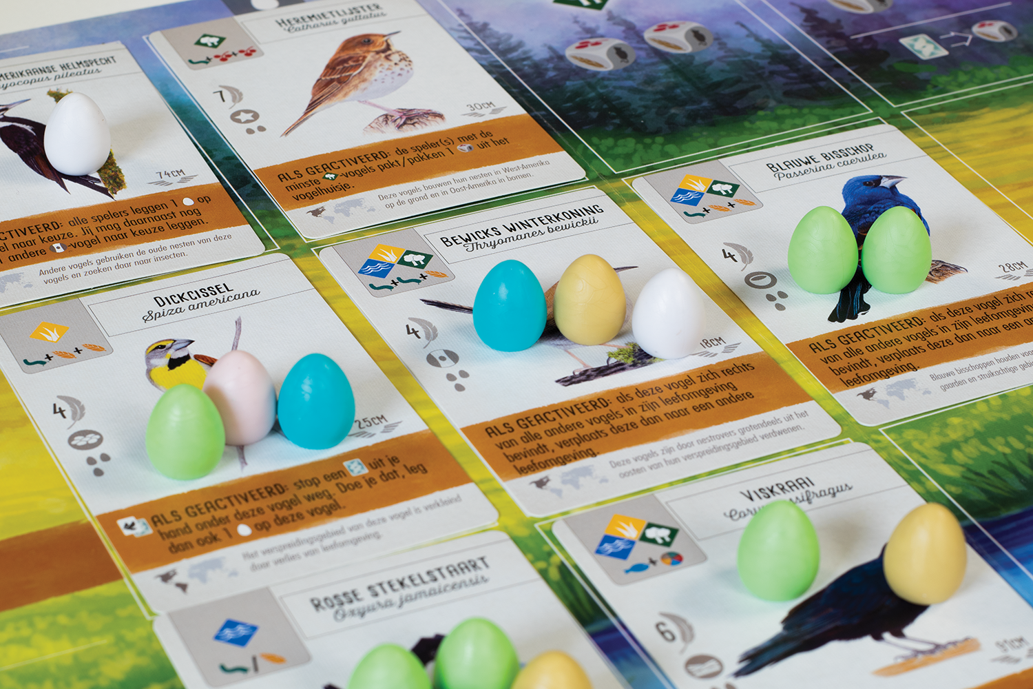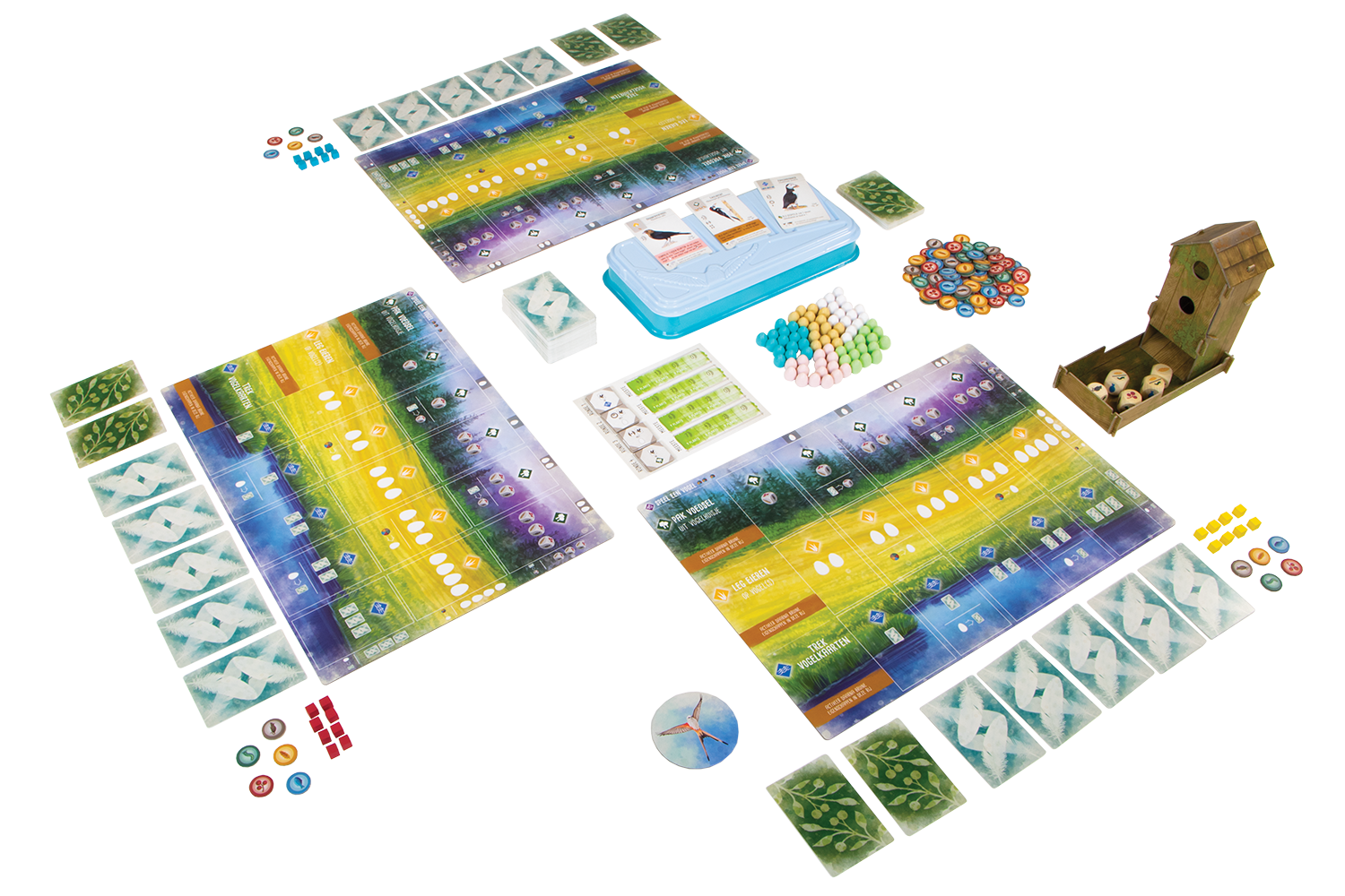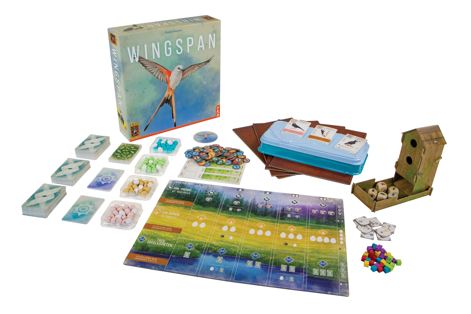 Een vogelspel vol tactiek en spanning! Als vogelliefhebber zet je vogels uit in jouw persoonlijke natuurgebied. Elke vogel komt in een van drie soorten natuuromgeving terecht: bos, weide of moeras. Daar gaan de vogels voor je aan de slag. Zo wordt in het bos voedsel verzameld, terwijl de weide ervoor zorgt dat er eieren worden gelegd en het moeras je meer vogelkaarten geeft. Door je vogels slim met elkaar samen te laten werken, behaal je het meeste voordeel. Dankzij tactische combinaties scoor je zo meer eieren, kaarten of voedsel dan je tegenspelers. Er zijn dan ook een groot aantal manieren om punten te verzamelen. Wie na vier rondes de meeste punten heeft verzameld, wint het spel. Het spel bevat 170 unieke vogelkaarten, die in combinatie met de verschillende bonuskaarten voor oneindige variatie zorgen. Ook heeft Wingspan fraai speelmateriaal, in de vorm van onder andere het vogelhuisje voor de dobbelstenen en de plastic eieren. Wingspan komt verder compleet met een speciale automa-variant voor solo-spelers.