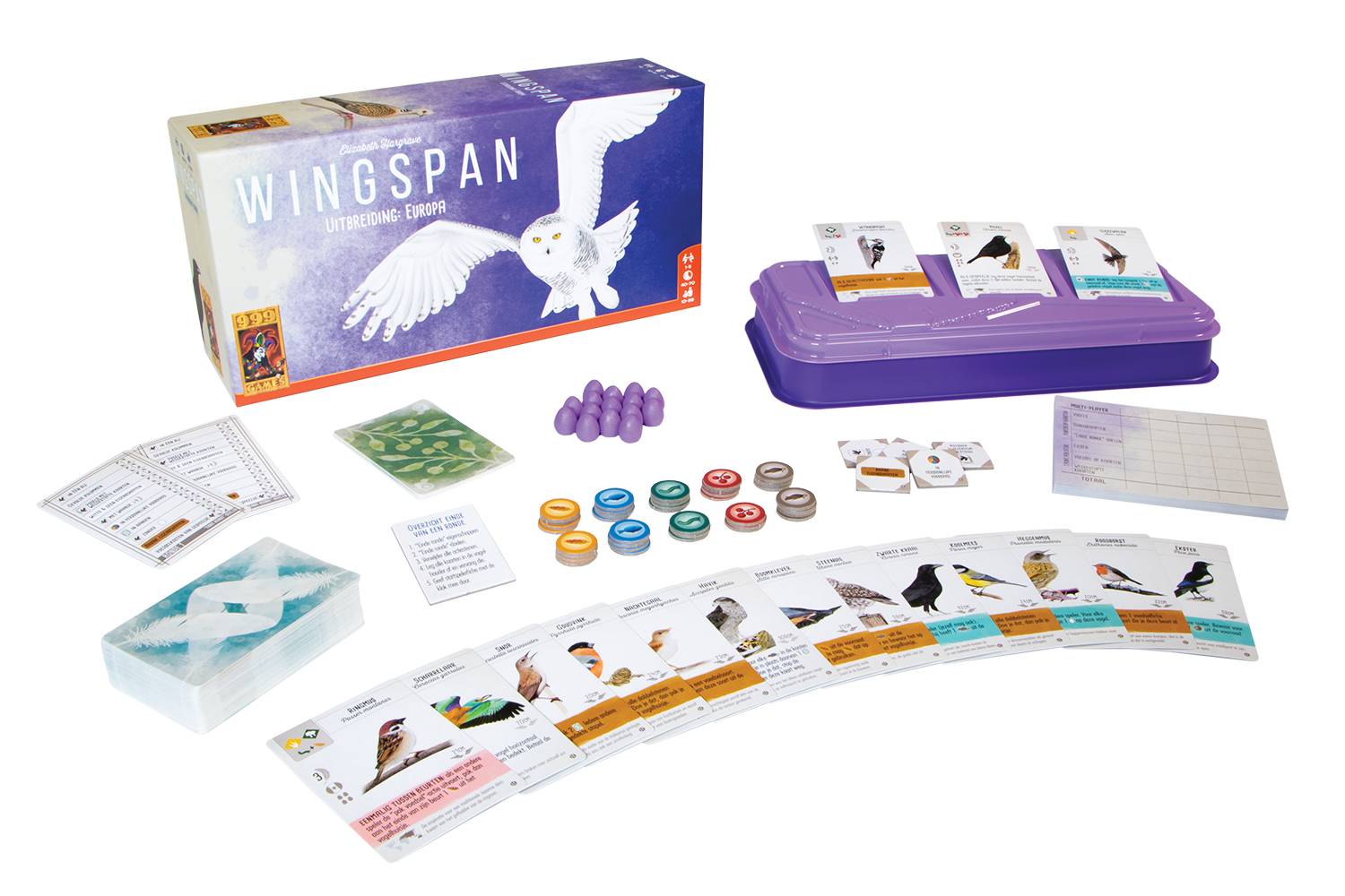In deze eerste uitbreiding op Wingspan vergroten we de blik op de wereld door de vele, prachtige en uiteenlopende vogels uit Europa toe te voegen. Deze vogels hebben allerlei nieuwe eigenschappen die de interactie tussen de spelers vergroten of nieuwe acties aan het einde van een ronde toevoegen. Sommige vogels kunnen profiteren van overtollig voedsel. Alle kaarten zijn zo ontworpen dat ze door de stapels van het basisspel (en toekomstige uitbreidingen) kunnen worden geschud. Deze uitbreiding bevat een extra doos om de groeiende verzameling vogels (actuele en nieuwe) te kunnen opbergen, 15 paarse ei-miniaturen, extra voedselfiches en een scoreblok om de scores voor solo- en multiplayer-spellen bij te kunnen houden.